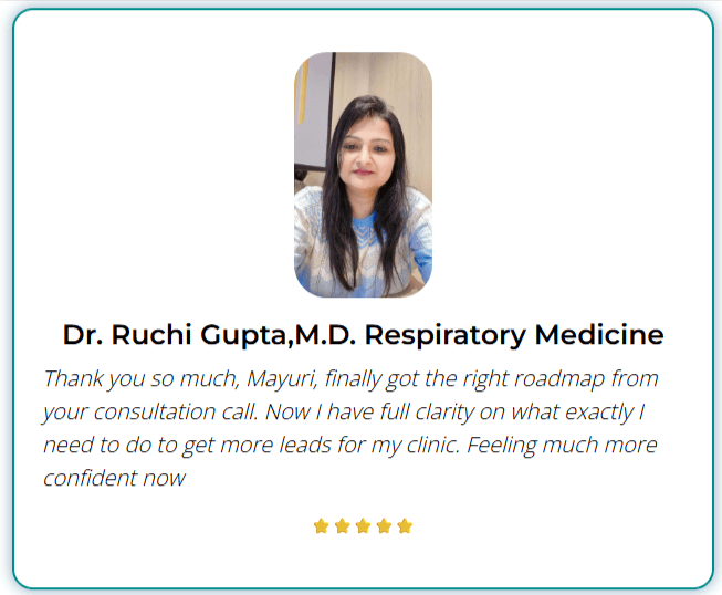 Thank you so much, Mayuri, finally got the right roadmap from your consultation call. Now I have full clarity on what exactly I need to do to get more leads for my clinic. Feeling much more confident now